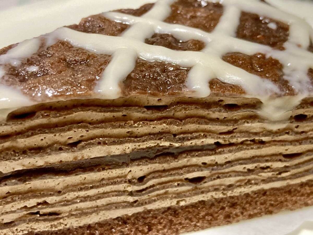 チョコクレープ生地に、生チョコを使用したくちどけのよいチョコホイップクリームを重ねたショコラミルクレープ。