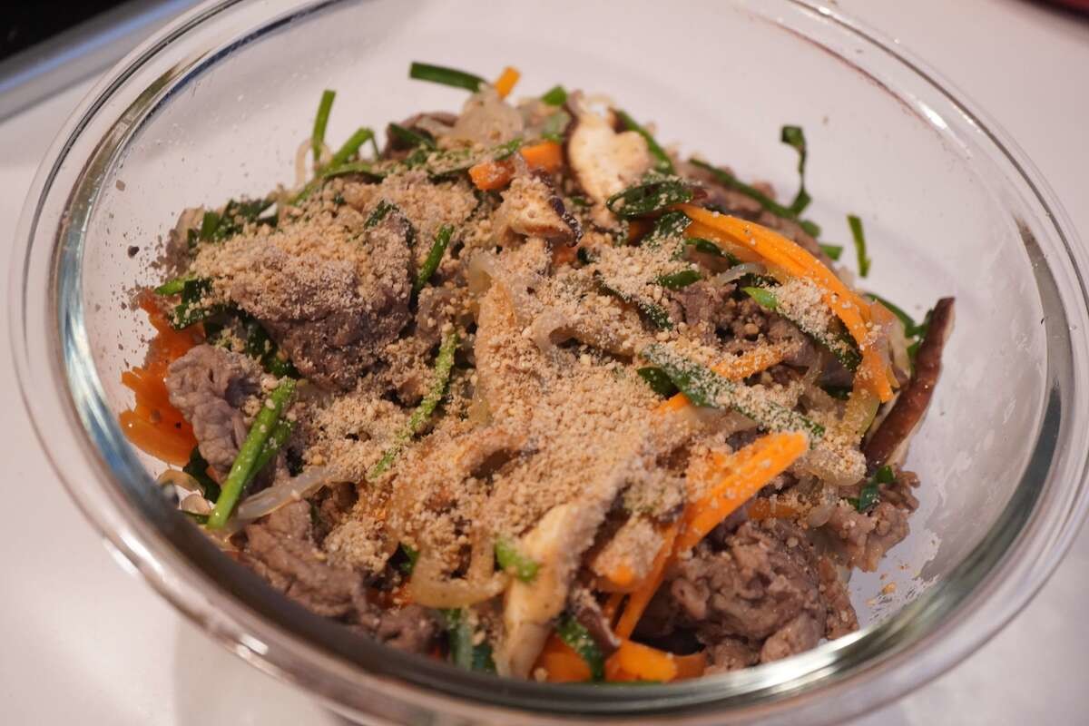 作り方⑥すり白ごまを加えて混ぜ合わせる