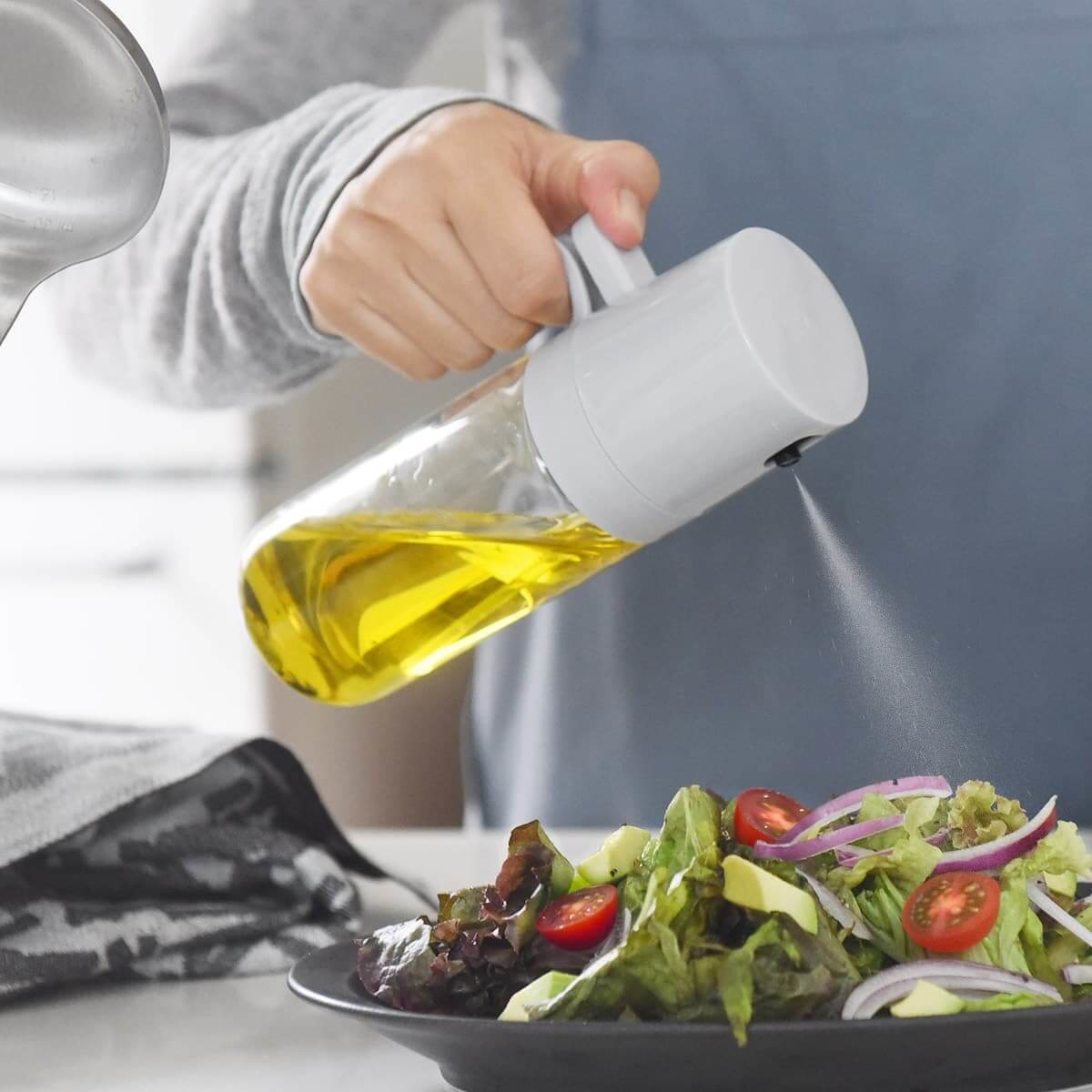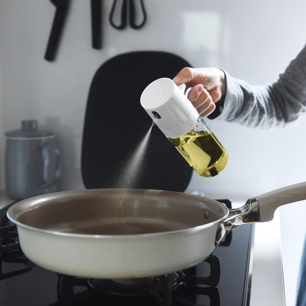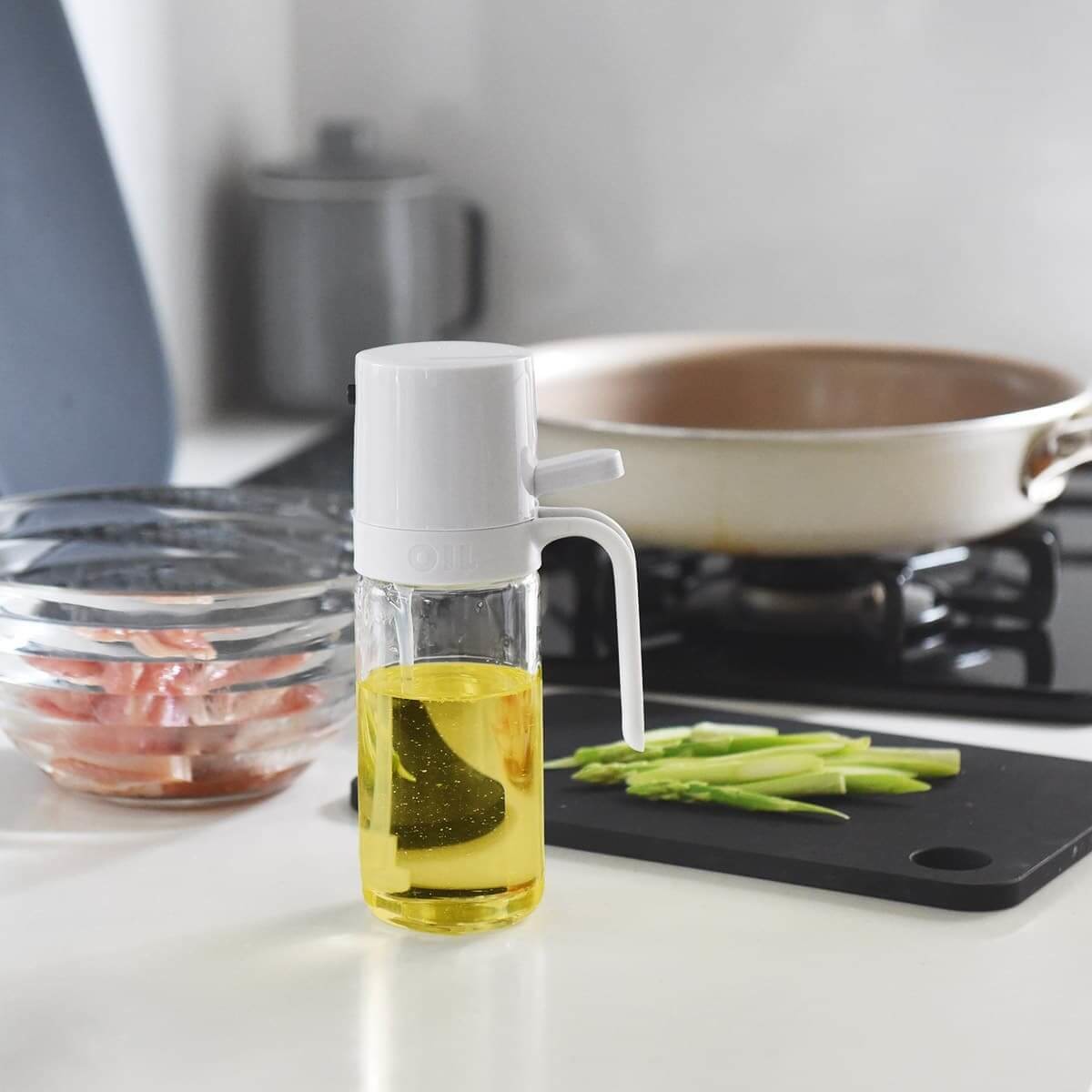 片手でシュッと操作できる便利なオイルスプレー容器。