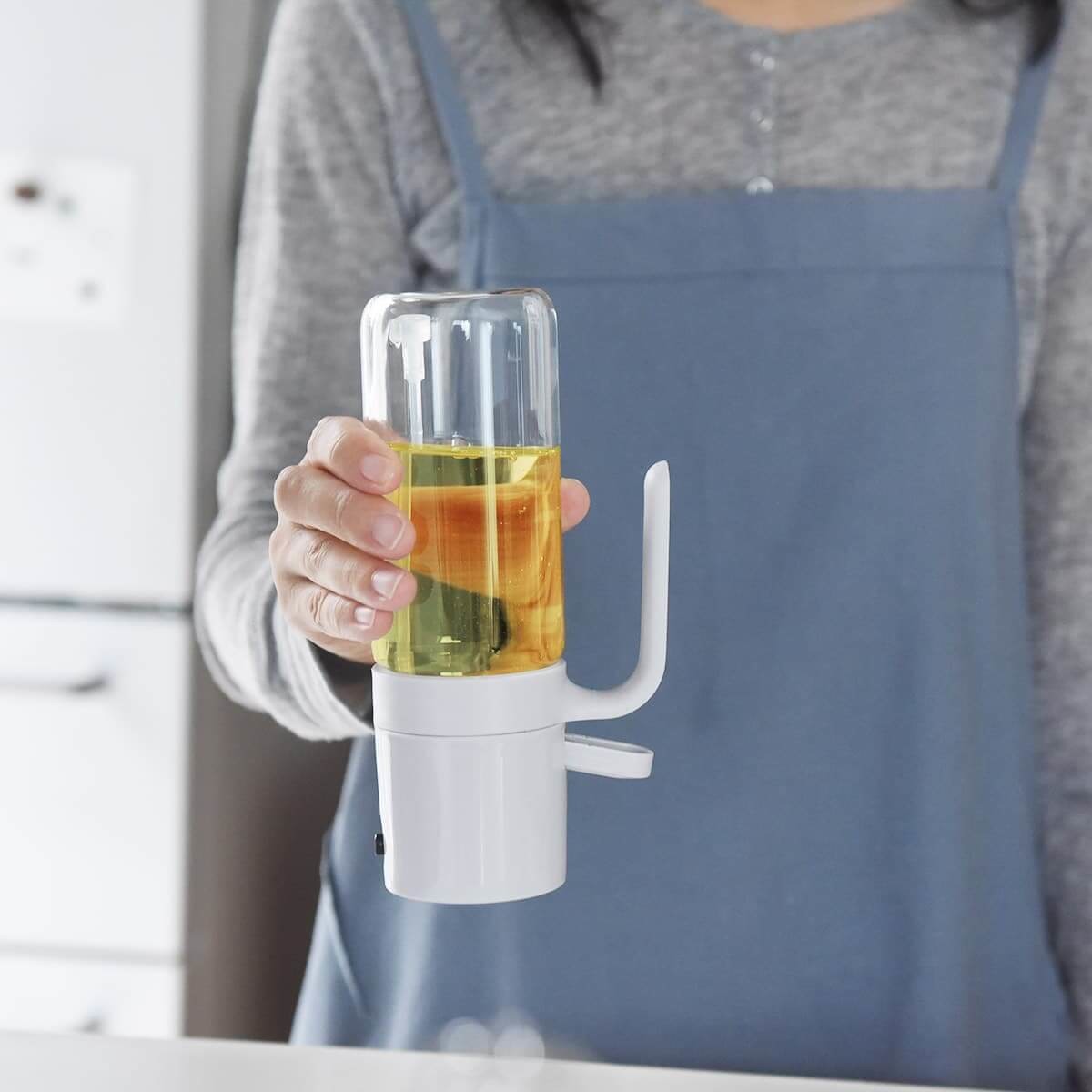 このアイテムは、油を節約してくれるだけでなく、蓋を開ける手間までカット。わかりやすくシンプルだからこそ、三日坊主やお蔵入りすることなく使い続けられます。