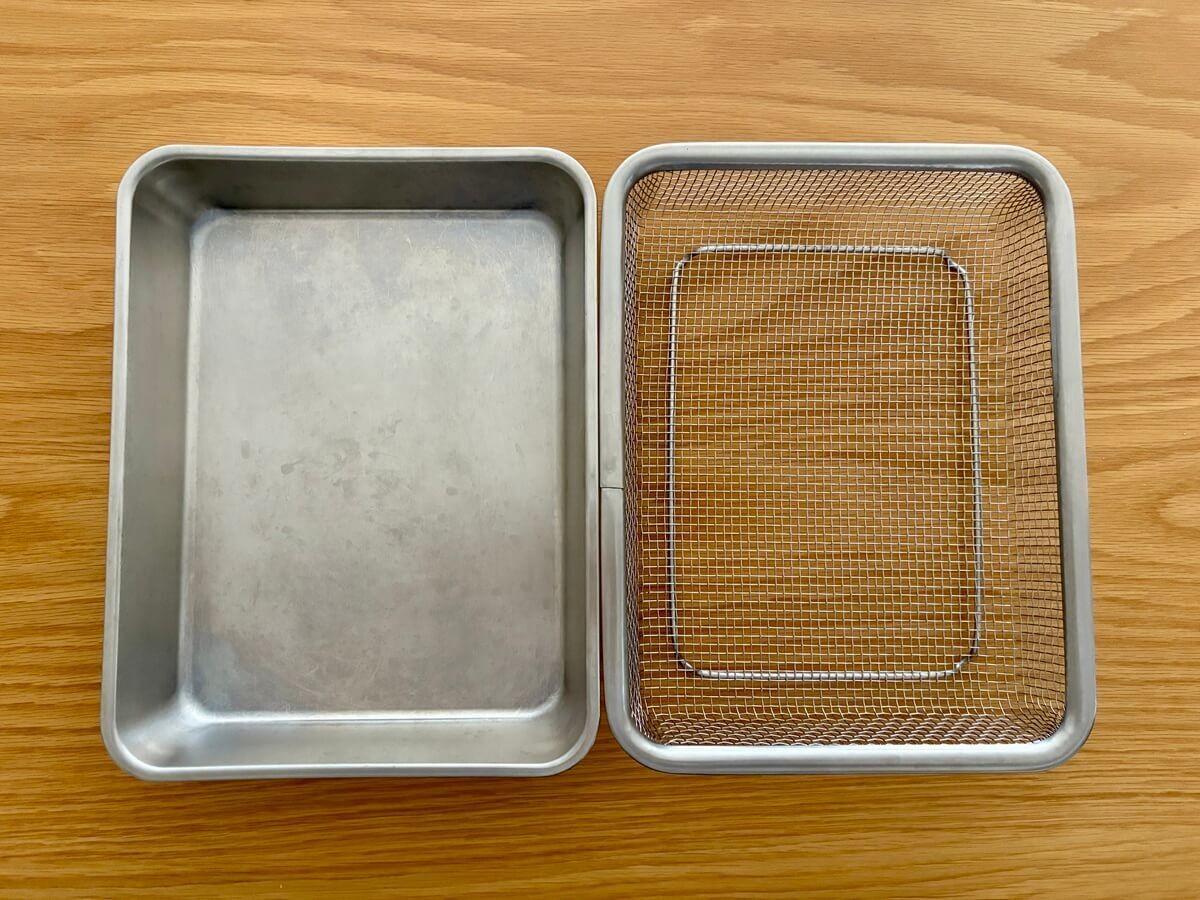 ③サビ知らずで多彩に活躍「ステンレス バット&メッシュトレー」