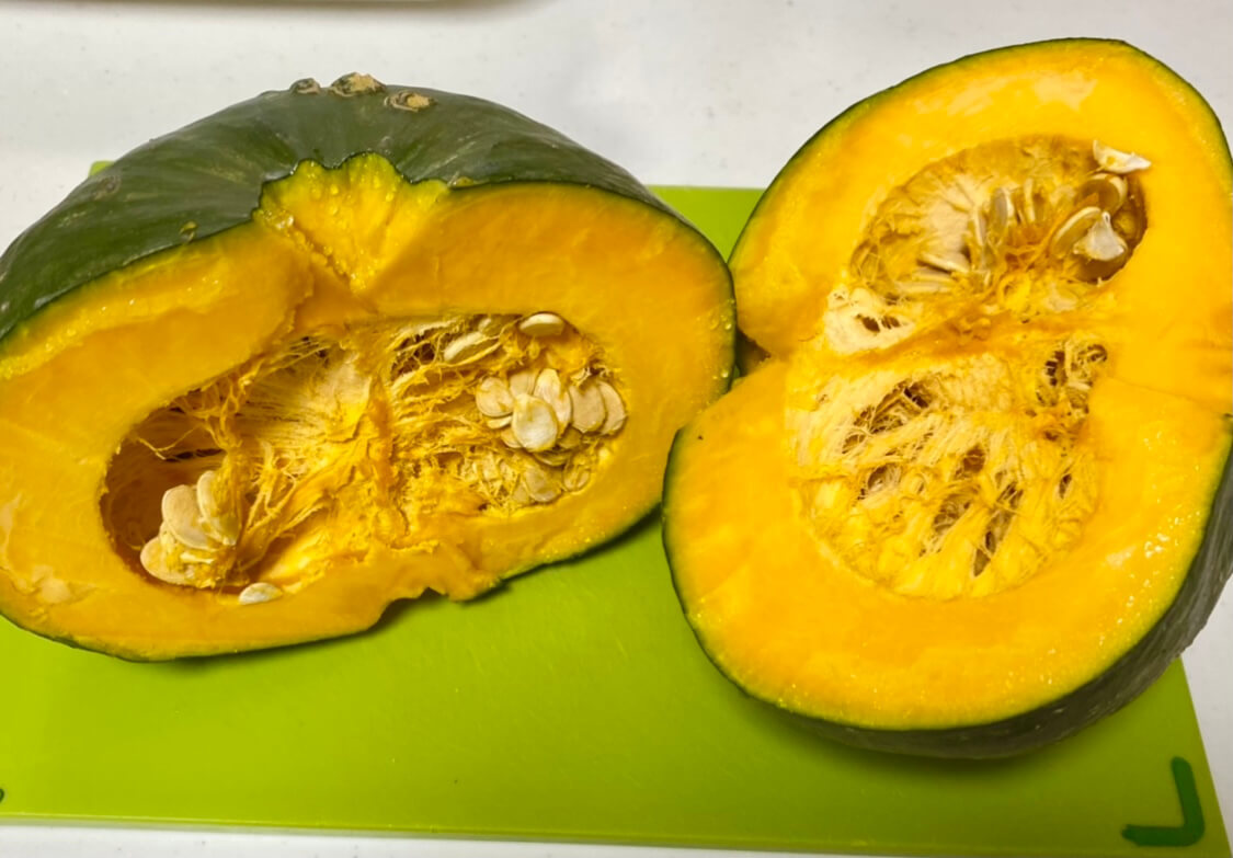 あんなに硬かったかぼちゃを難なくパカッと2つに切ることができました!