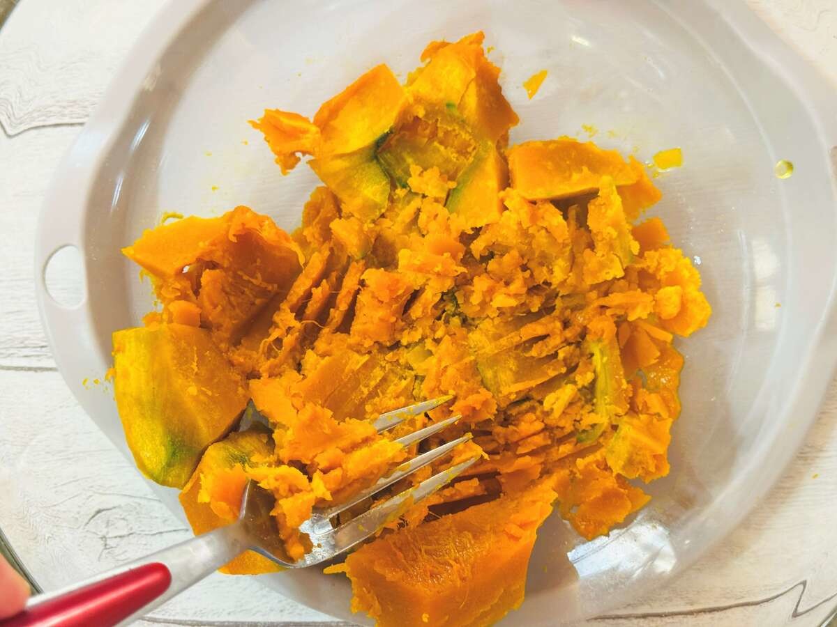 材料に記載はありませんが、動画内ではかぼちゃをレンジで加熱する際に水大さじ2も入れていたので、こちらも準備しておきました。