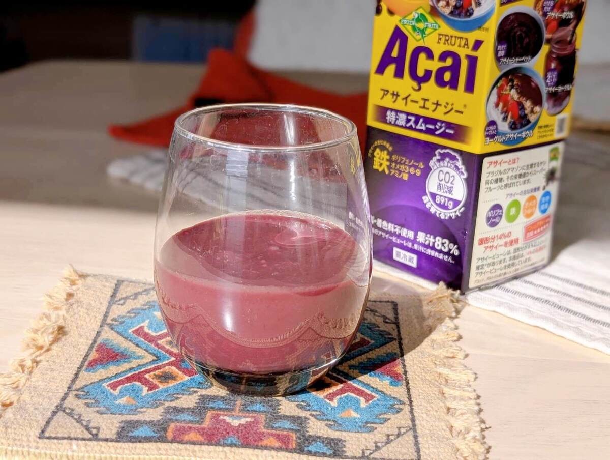 時間と心に余裕があるなら、凍らせてアサイーシャーベットにしたりアサイーボウルを作るのもいいですね。そのまま飲んでも、アレンジしても、お店で注文したり買ったりするのとは比べられないほど安上がりです。