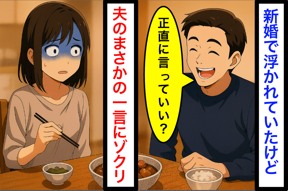 新婚の夜、夕食を出した瞬間 夫が笑ってつぶやいた【正直に言っていい?】"背筋が寒くなる"理由にゾッ…