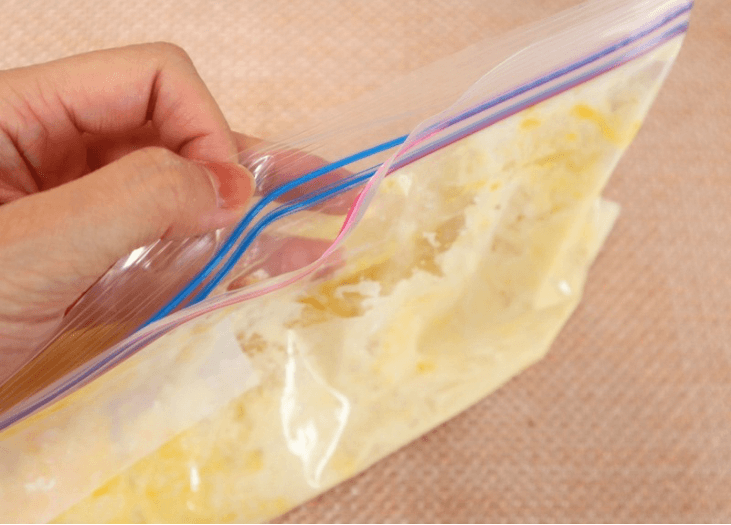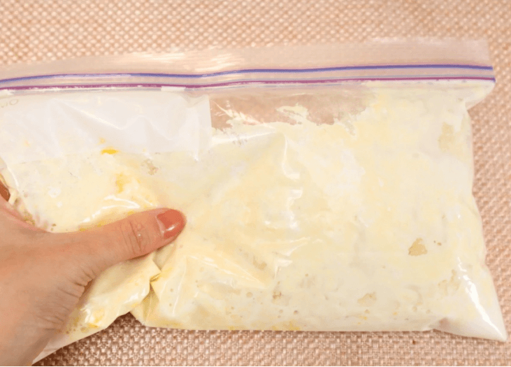 少し空気を抜いてチャックを閉じたら、袋の上から揉むようにして混ぜ合わせて生地を作ります!