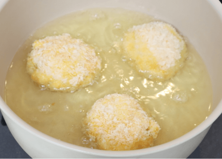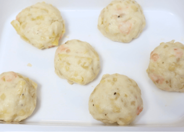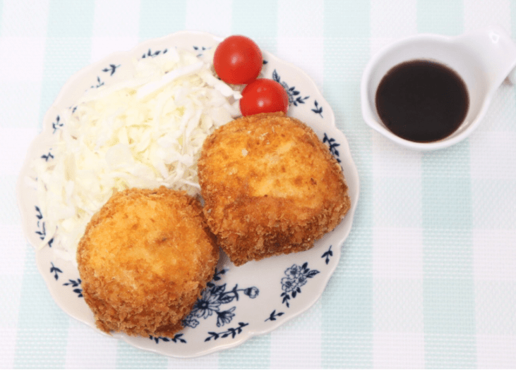 こちらが、完成したあやシェフさんの「簡単グラタンコロッケ」です。綺麗な丸い形とこんがりとした衣が印象的。