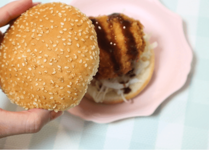 スーパーのパンコーナーでゲットしたバンズを使って“自家製グラコロ”を作ってみました♪