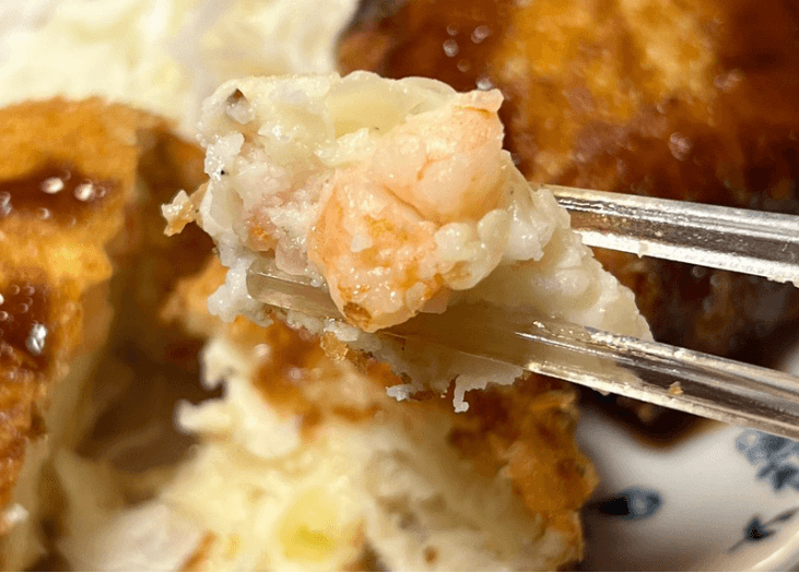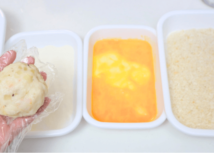 細かく切ったえびのプリッとした食感と、マカロニのもちもちの歯ごたえも楽しめる贅沢なグラタンコロッケになりました!