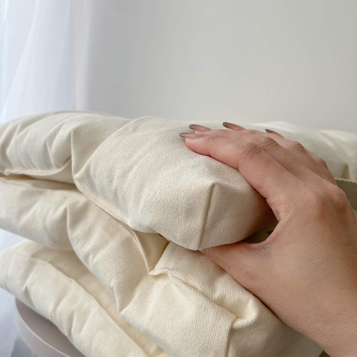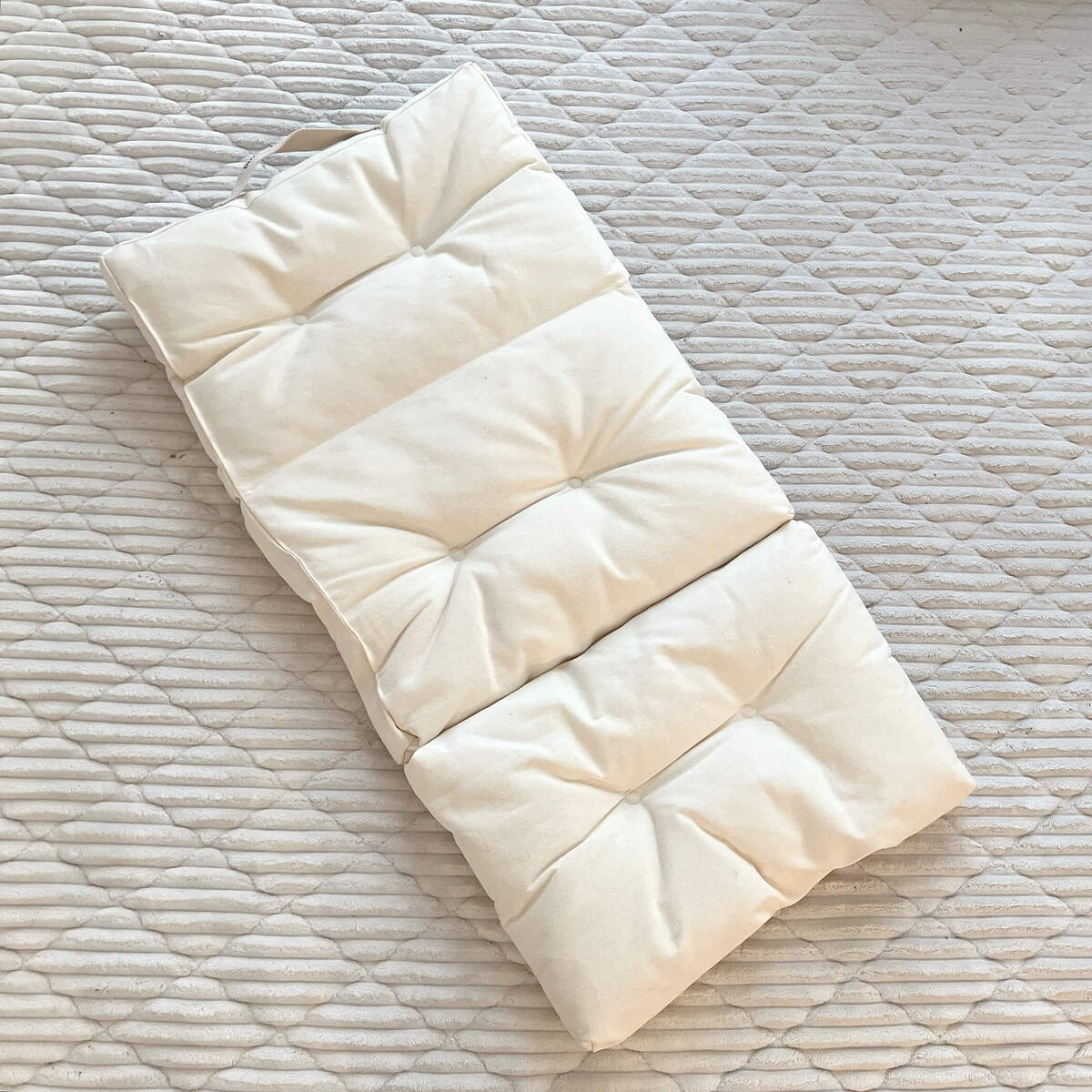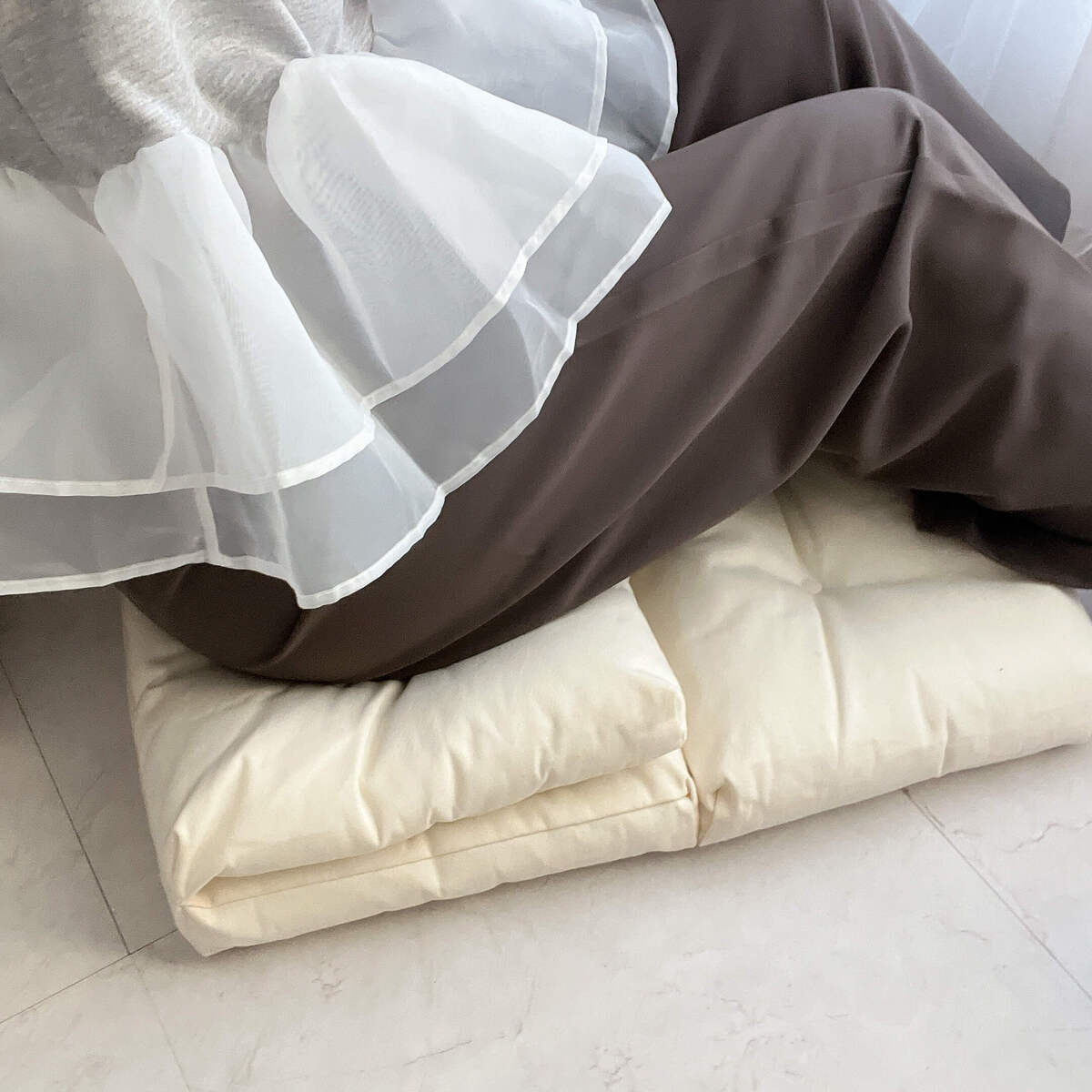 三つ折り:背当てやクッションとして・二つ折り:座布団として・そのまま:長座布団やマットとして、姿勢に合わせて様々な使い方ができるんです!