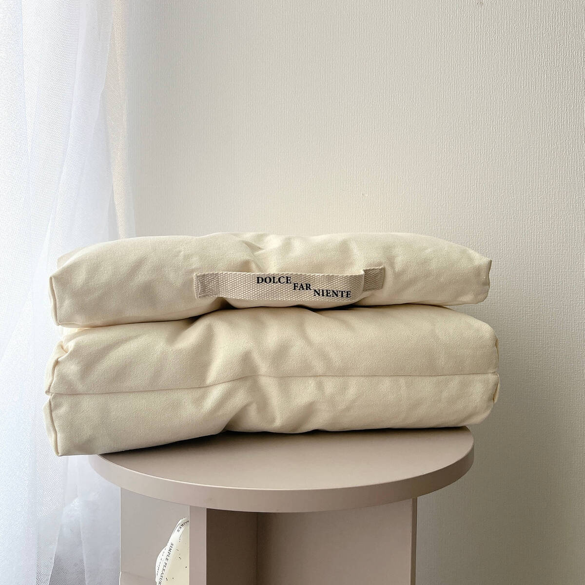 厚みのあるわた入りで、座っても寝転んでもふんわり快適。