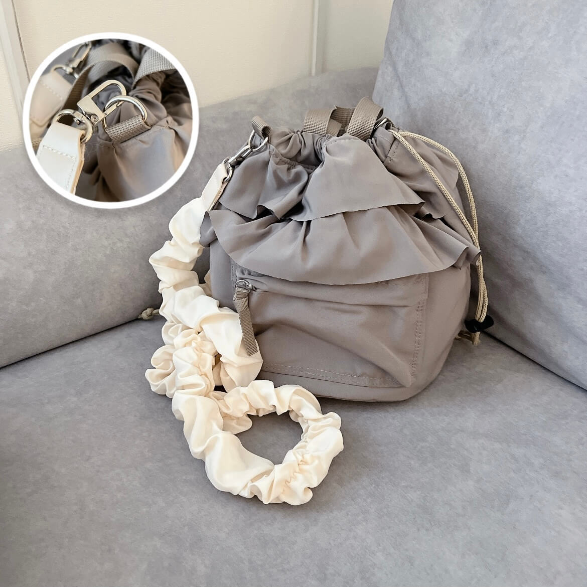 ふんわりとしたフリルデザインが、どんなコーデにも程よい甘さをプラス。大人っぽくも可愛く持てるのが決め手でした。