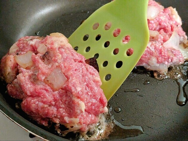 ハンバーグは調理の途中で崩れて失敗することも多々。崩したくなくて小さく作ることもあります。
