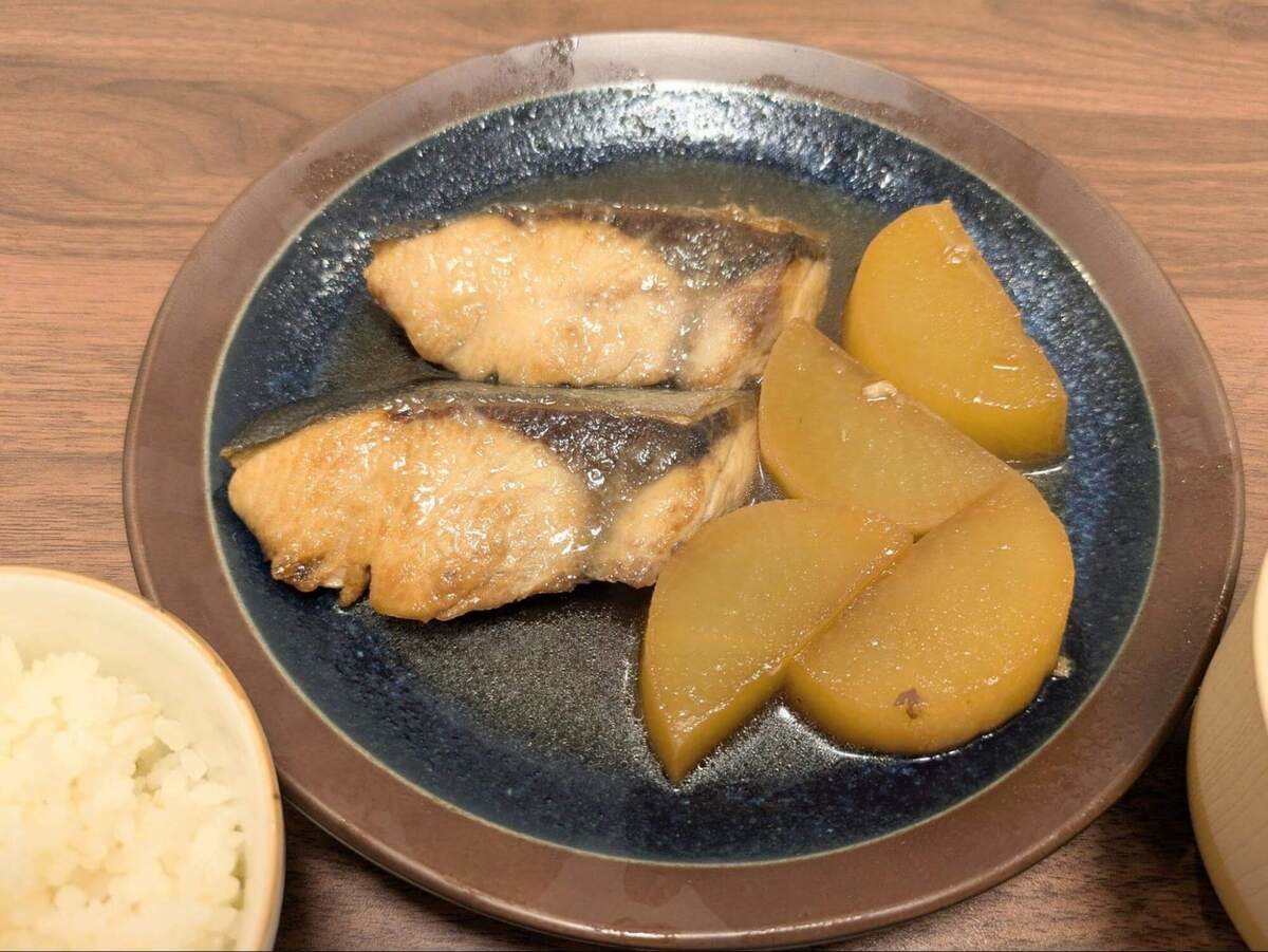 ブリに煮汁がしみたらお皿に盛りつけて、残った煮汁を3〜4分程度煮詰めてかけたら完成です!