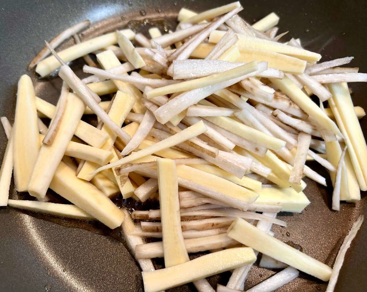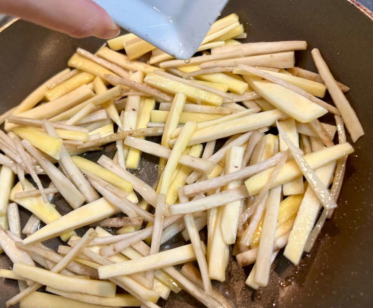 作り方②ごぼうとさつまいもを炒める