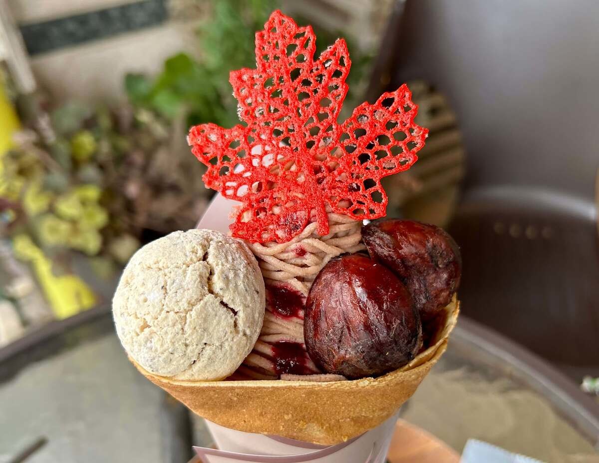 そんなこんなで、カフェタイムを楽しみながら待っていると「マロンパフェクレープ」が到着!