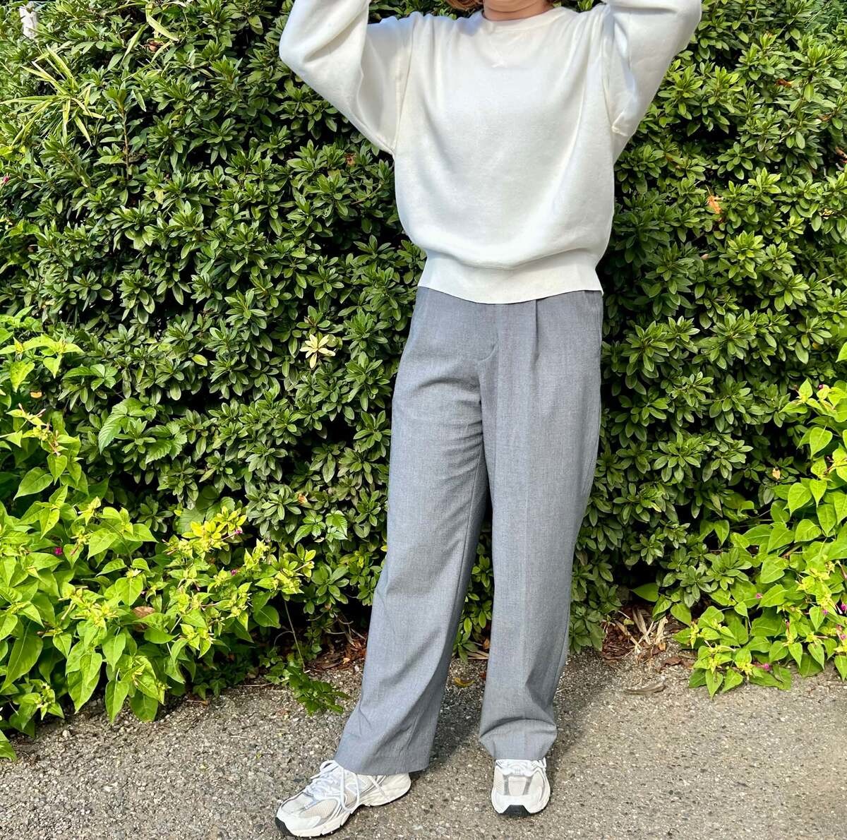 暗めな洋服が増える秋冬だからこそ、今回はホワイトカラーをチョイスしました。さまざまテイストのボトムスと合わせやすいので、とても重宝しております。