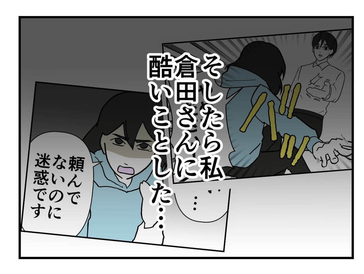 前回、タイムカードの機械が故障してしまい、社員の倉田さんに話しかけなければいけなくなってしまったきくちさん。勇気を振り絞って倉田さんにお願いしますが、拒絶された腹いせか倉田さんは無視。おいおい、大人がやることか!?と漫画担当は憤慨しまくりです。