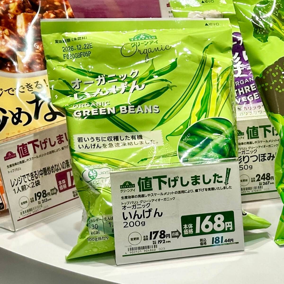 - 商品名:トップバリュ グリーンアイオーガニック いんげん(冷凍)