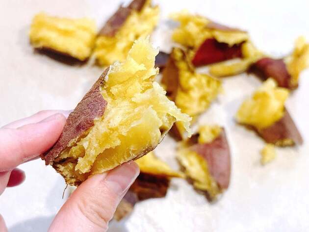 焼き芋は包丁で切らずに、手でちぎるのがポイント!