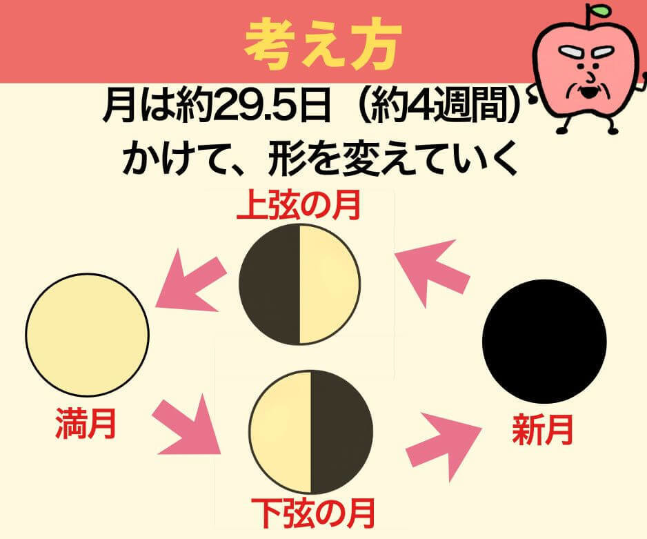 月は約29.5日(約4週間)かけて、次のように形を変えていきます。