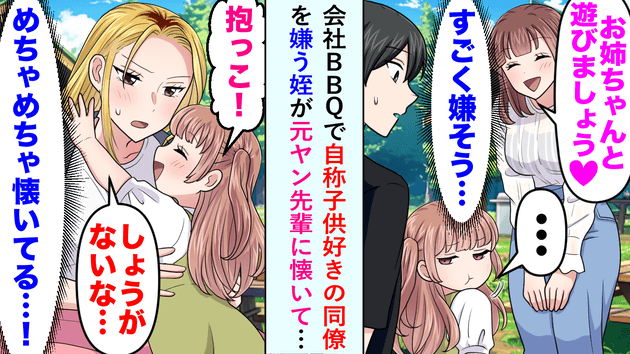 会社BBQで、同僚「お姉ちゃんと遊ぼう♡」→姪がガン無視(汗)!なぜか元ヤン先輩に懐いて…2人の“裏の顔”が発覚!