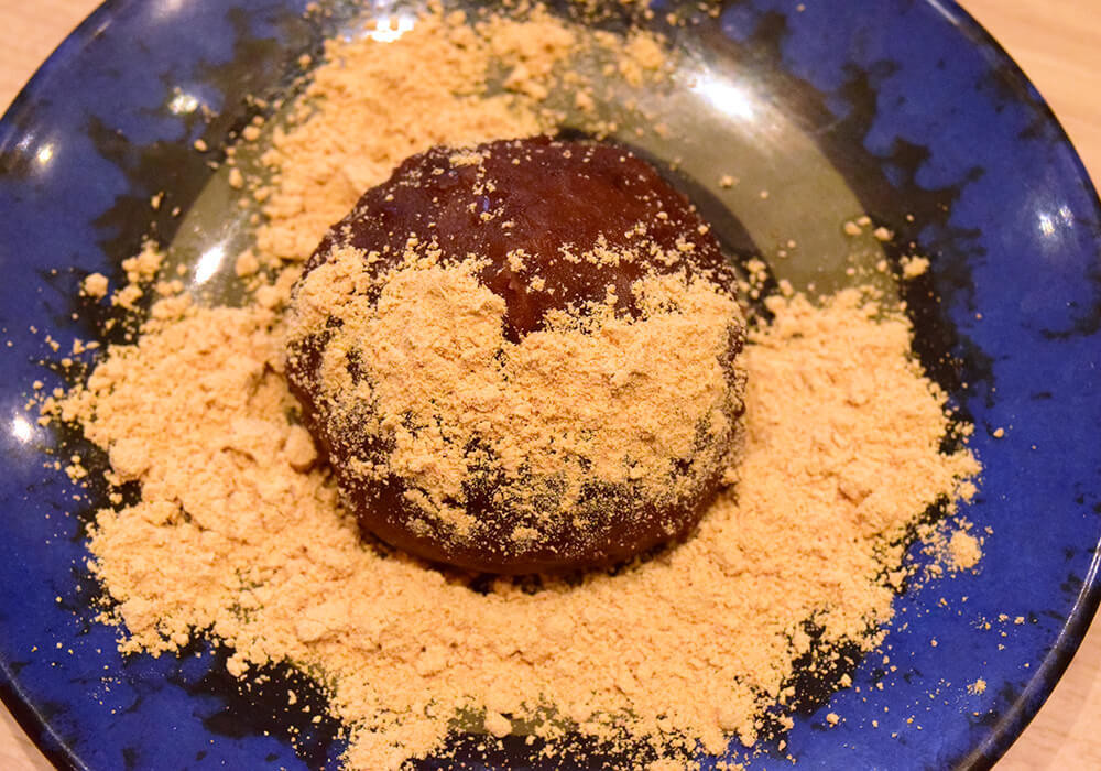 資さんうどん名物「ぼた餅」にきなこや黒ごまをたっぷりかけた「ミニきなこぼた餅」「ミニ黒ごまぼた餅」が登場したので、食後の一品として実食しました。