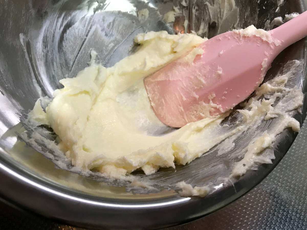クリームチーズと砂糖を混ぜる時は柔らかくなるまでこねると、生クリームを入れた時にダマになりにくいみたいです!