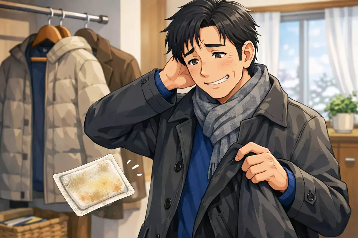 拾い上げてみると、そこには1シーズン前に使いかけのまま入れっぱなしにしていた貼るカイロ。去年の冬の自分からの、思わぬ置き土産でした。