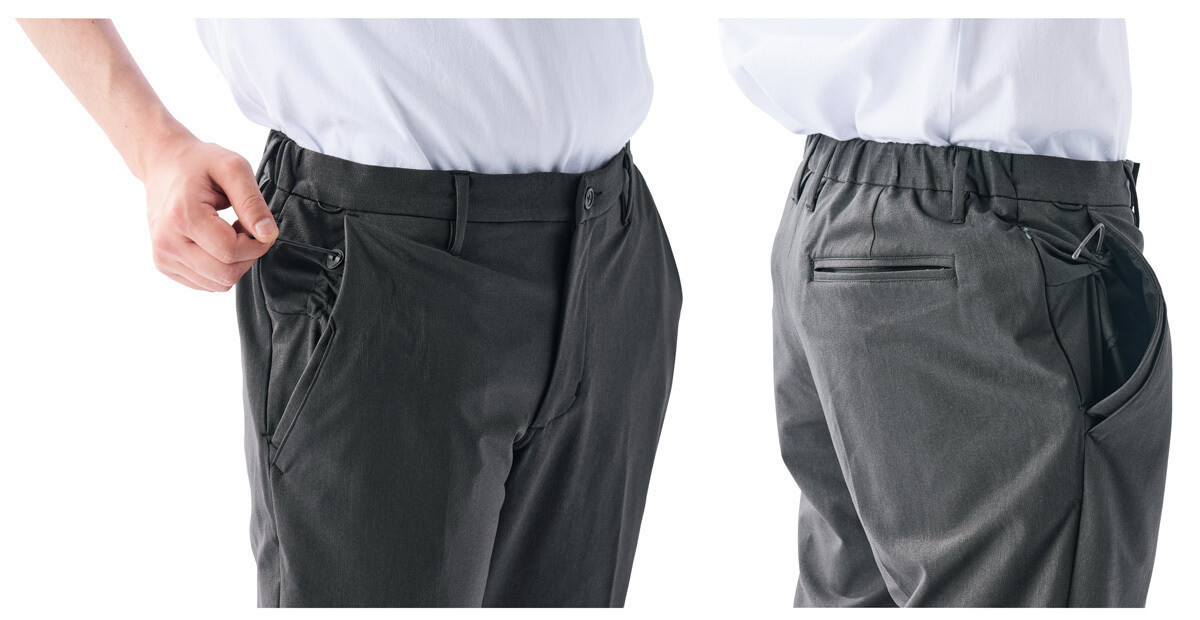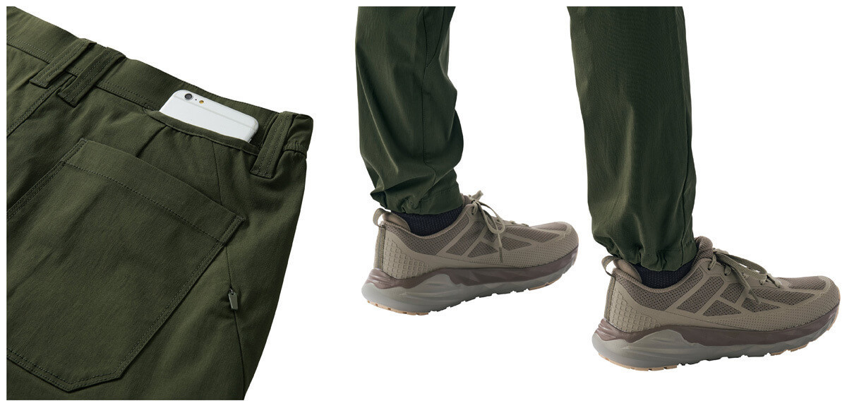 機能:ファスナーベンチレーション/スマートフォンポケット/タオルかけループ/裾アジャスター/股下クライミングカット/多収納ポケット/膝曲げ伸ばし楽々/横50%以上のストレッチ