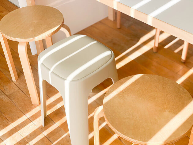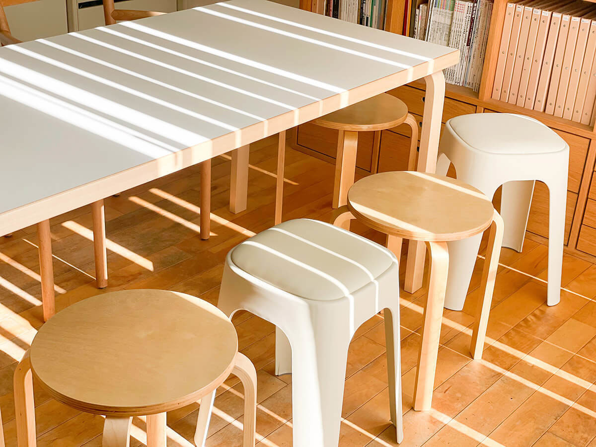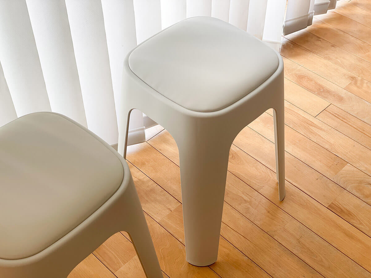 bon momentのスタッキングスツールは、座面にクッションが付いた柔らかい座り心地が魅力です。