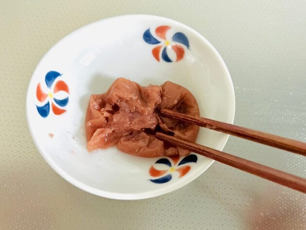 というわけで、我が家の冷蔵庫に常備している梅干しで試してみることにしました!