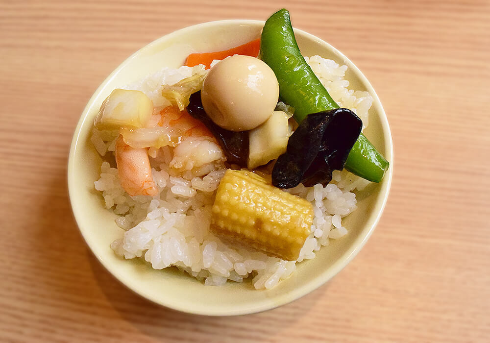 もちろん、白ごはんとの相性も抜群。和風中華丼のような仕上がりになります。ただし「海老五目そば」のスープは一般的な中華丼よりもとろみがひかえめなので、かけすぎるとスープごはんのようになって食べにくくなるかもしれません。ほどよい量で楽しむのがおすすめです。