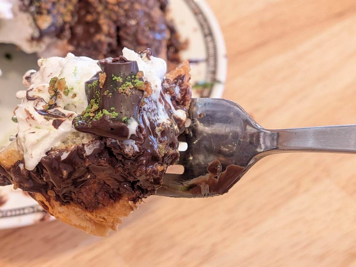 さらに、宇治抹茶パウダーがかけられ、見た目にも華やか。まるで“和と洋のデザート祭り”のような一皿となっています。