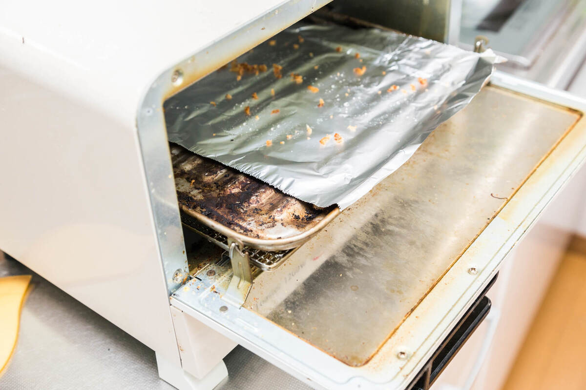 パンくずや油汚れ、そのままになっていませんか?お手入れが面倒なのはめちゃくちゃ分かりますが、汚れが溜まった状態で加熱すると発火の原因になります。
