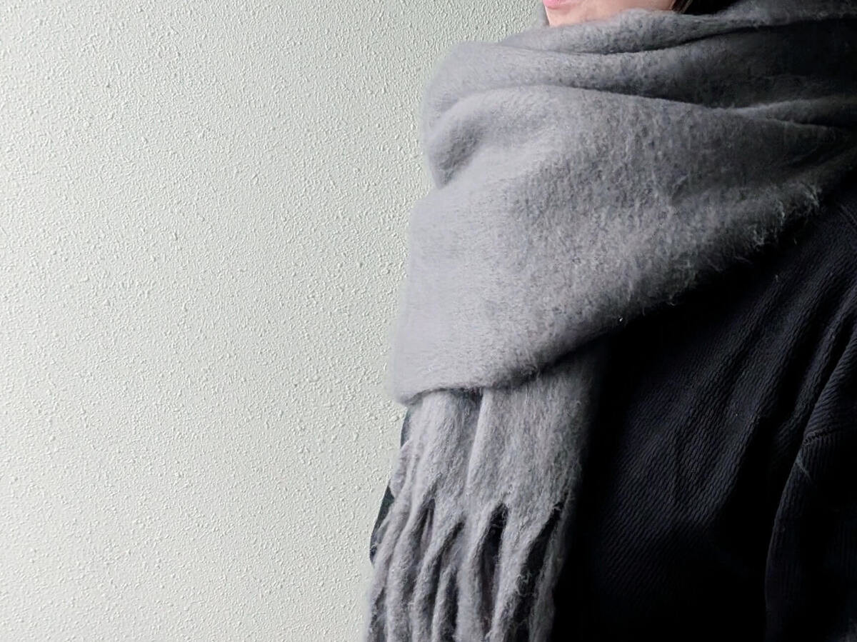 ただ1つ。こういうマフラーの宿命かもしれませんが、めちゃくちゃ繊維がつきます!黒や紺など暗めの洋服は要注意です。