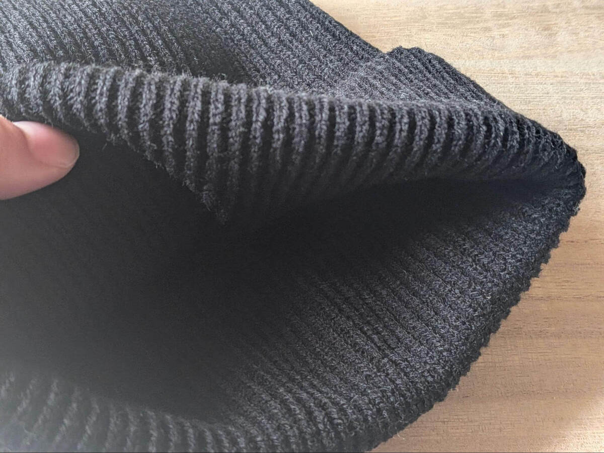 私はウールだとおでこがチクチクして、長く着用できないことが多いのですが、こちらはアクリル。チクチク感もほとんど気になりません。