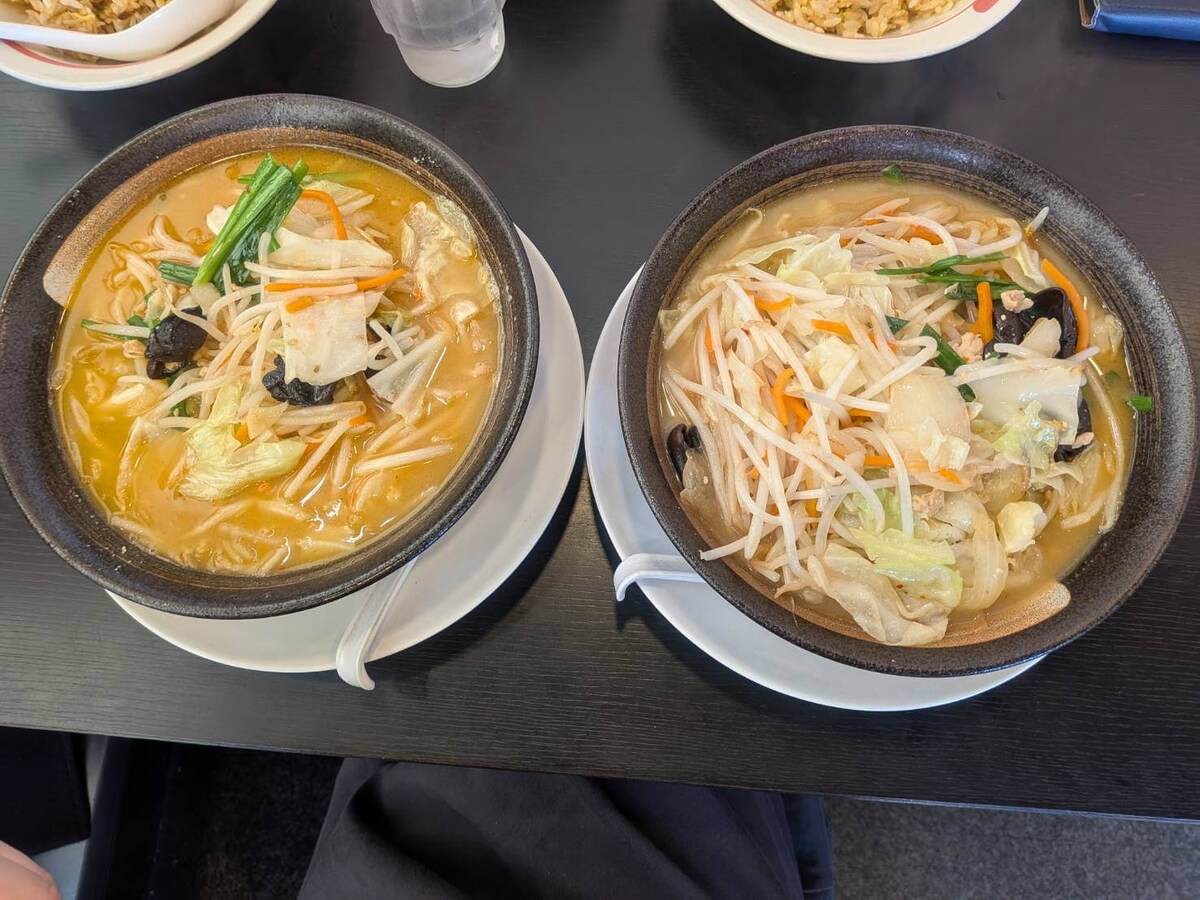 普通サイズの味噌野菜たんめん(左)大盛りの味噌野菜たんめん(右)