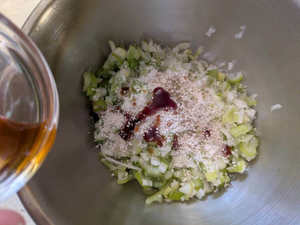 ボウルに入れた長ねぎに【A】を加えて混ぜます。