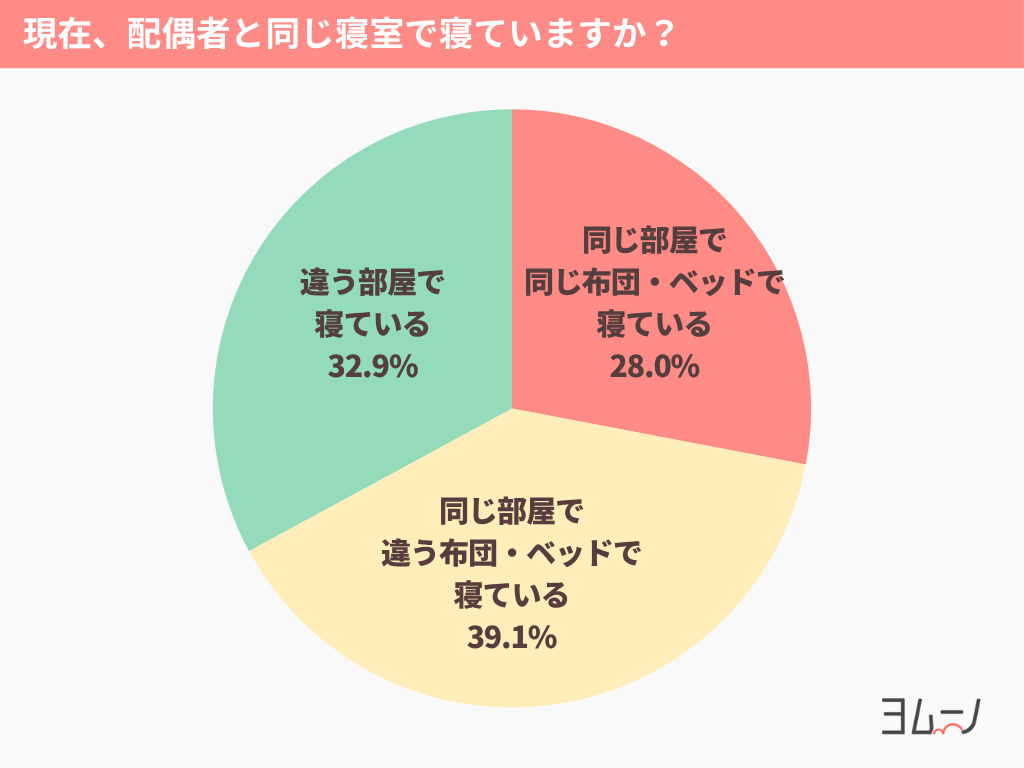 合わせると、夫婦の寝室が”同室”という方は67.1%と、多数派であることがわかりました。対して、「違う部屋で寝ている」という別室派は32.9%でした。
