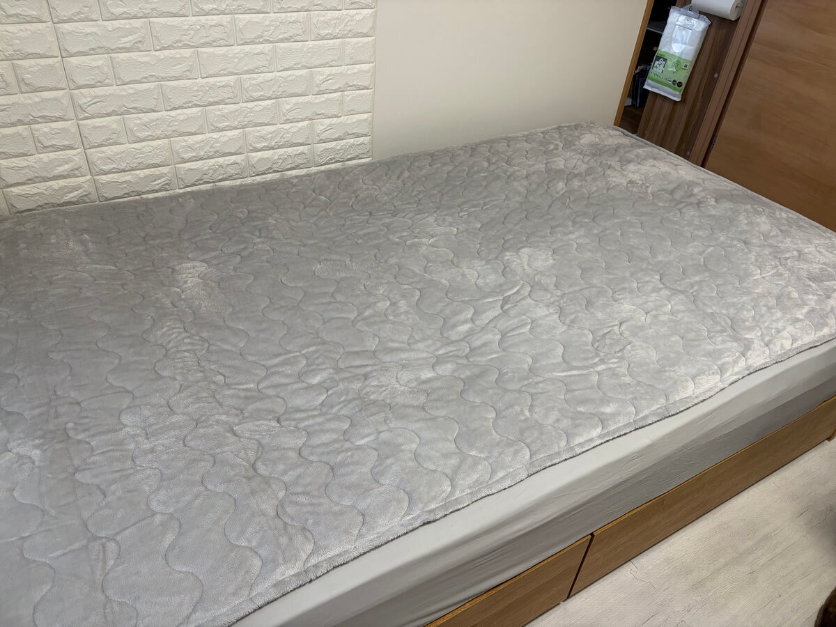 両面使えるベッドパッドのBOXタイプだと、つけ外しがしづらいと思われがちですが、意外と楽々でした。 このベッドパッドを使用すると寒い冬でも快適な睡眠ができると思います。
