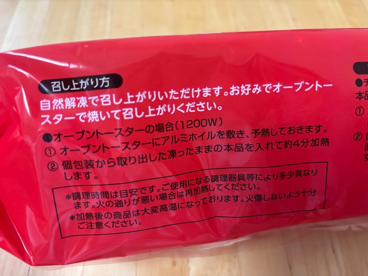 ・オーブントースター:1200wで4分(予熱なし&1000wでも3〜4分で問題なく焼き上がりました)
