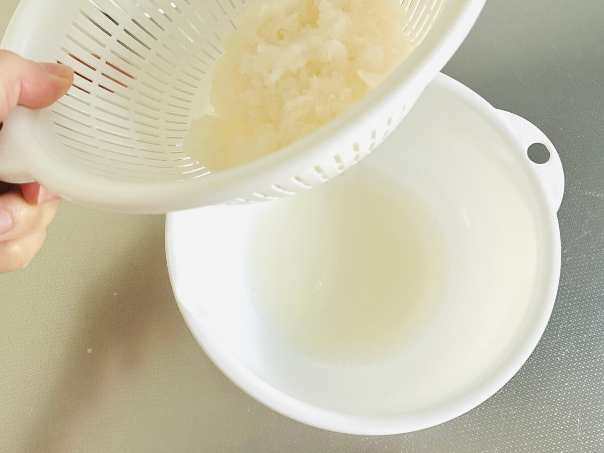 大根は皮をむき、全てすりおろします。
