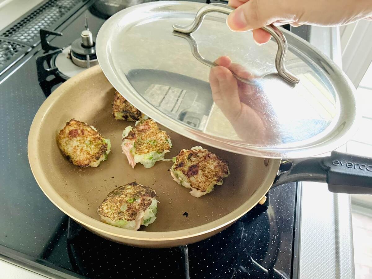 再びフタをして、弱火で2分焼きます。
