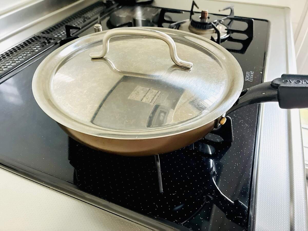 フタをして、3分焼きます。