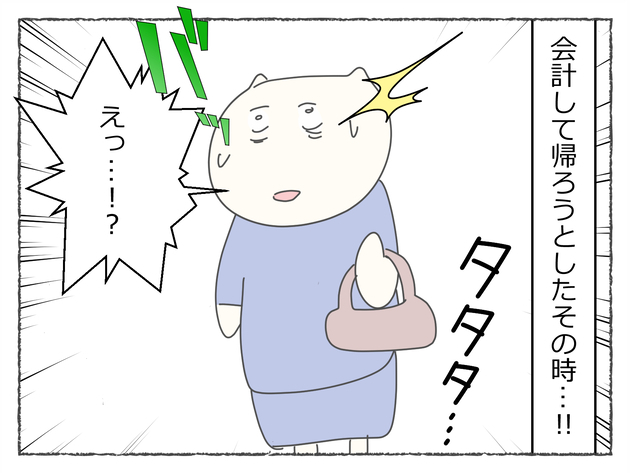 一度受け取った伝票を、なんとレジの前で押しつけてきた鈍子!!!思わず「なんなん!?」と言いたくなってしまいました。