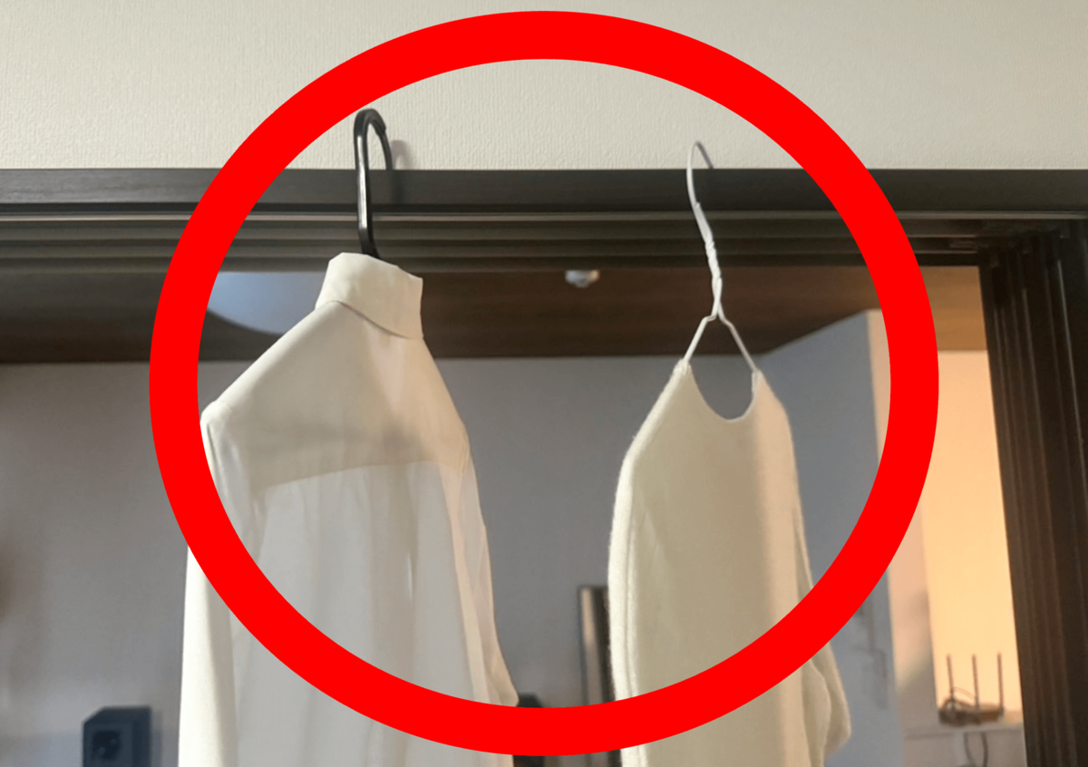 選ぶ場所のポイントは、お部屋の中で空気が動く場所。部屋と部屋の間の鴨居や、室内用の物干しなどを部屋の壁から離した場所に置くなどして、空気の動きがある場所に干すよう心がけましょう。