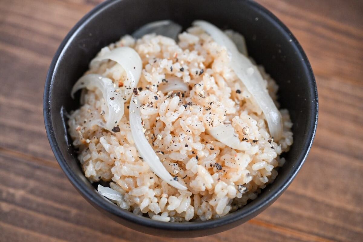 炊飯器の中でじっくり蒸された玉ねぎは、とろけるように甘くなり、その旨みがごはん全体に染み渡りますよ。