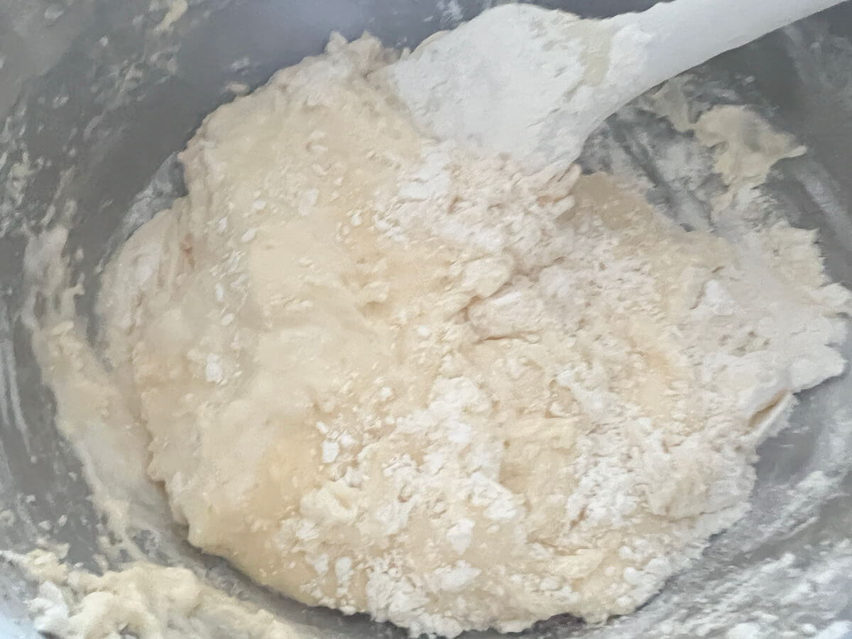 これをもう一度繰り返し、仕上げに溶かしバターを加えて混ぜましょう。