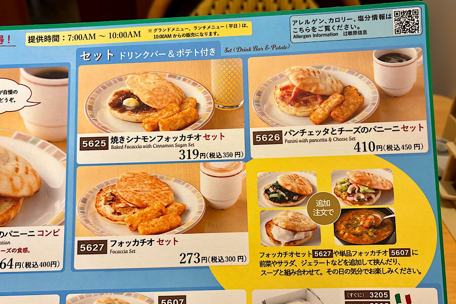 お値段を抑えつつ、朝食や早めの昼食を済ませたいときにもぴったりです。